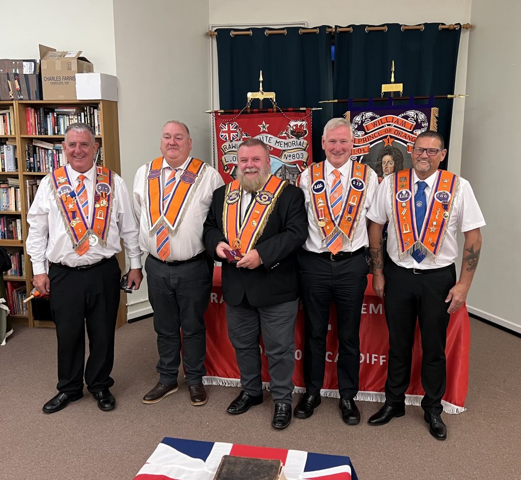 On Friday evening the 19th July, Rawlins White Memorial LOL 803 of Cardiff, met for their monthly meeting.