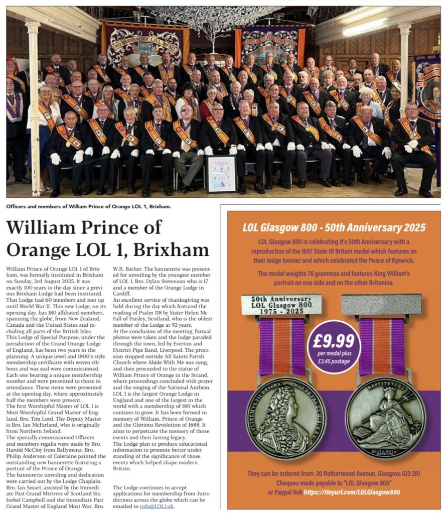 On the weekend of 19th and 20th of September 2025, several of our members travelled to Plymouth for the Grand Orange Lodge of England, sessions, dinner and parade. It was a successful weekend of reports, discussions, presentations and a very enjoyable dinner held on the Friday evening.